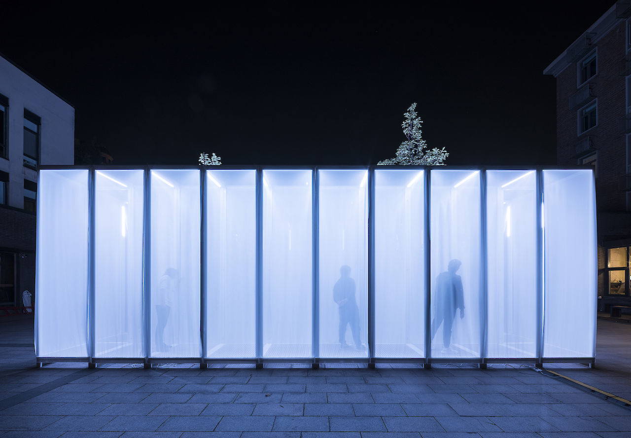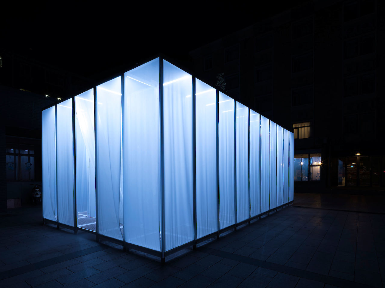 Superimpose Architecture designed the CO2 Pavilion for the Beijing Design Week 2018 as an enclosed place for contemplation and as a tridimensional projection screen for projection on the layered exterior. Ultimately architecture, music, visual art and light art work hand-in hand to consolidate awareness about the conditions of the cities we inhabit like pollution and urban density. The CO2 Pavilion strives to restore the missing sense of gathering and togetherness rooted in the traditional Chinese ‘Siheyuan’ way of living.