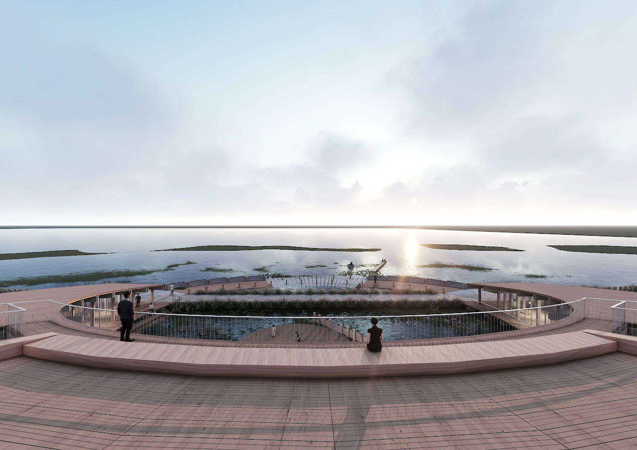Hexi is a small agriculture-oriented city in Jiangsu Province famous for crayfish farming. The new visitor and experience center designed by Superimpose is initiated to promote the remote agricultural area and crayfish farming and attract visitors. The building provides space for an exhibition space, restaurant, conference center and a small hotel.