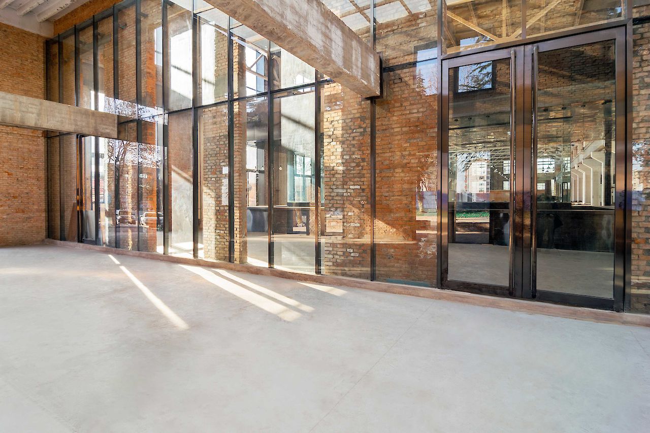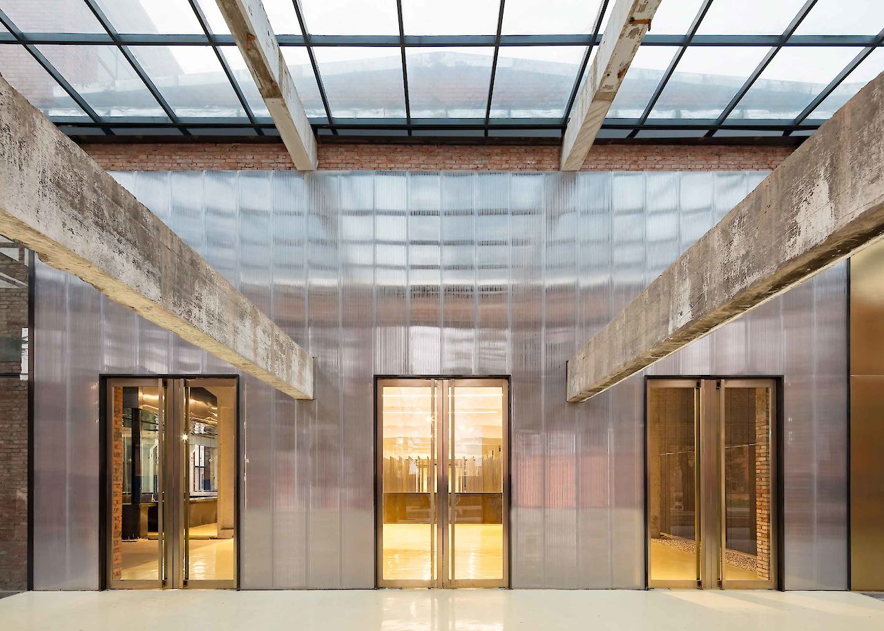 The original load-bearing factory façade was concealed by an office extension on the east side of the factory that had a comparatively denser grid wall structure. Superimpose proposed a veranda by removing all the interior subdivisions of the extension, revealing the original factory façade and made this into the main entrance of the Exhibition Centre. The essence of the extension is kept by framing the original windows and doors without any infill. The glass roof veranda offers a sequential arrival space, which pronounces the main entrance and promotes accessibility.