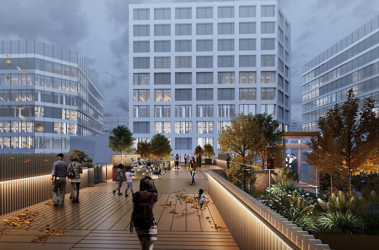 The bridges are located near the ‘Hangzhou East Railway Station’, which is regarded as the ‘gate’ of the masterplan. The ‘main axis’ of the masterplan connects the station over 2 canals to a central park, and ultimately to the cultural plot at the northeast side. The retail in this masterplan is situated along this main axis and on most of the first and second floors within this masterplan.